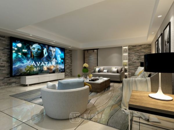 影音室不像其他的风格注重享受的情调和氛围的营造,而是通过布艺的沙发、木质的茶几和墙壁上的天然纹理来营造自然感,给人更温馨舒适的感觉。这样一间影音室,不是用来沉溺享乐,而是放松心情,更好的休息的。