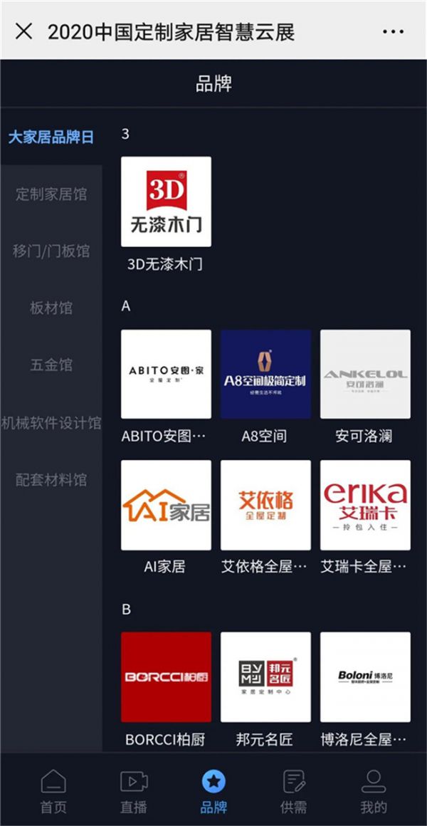 本次智慧云展联动定制家居、移门/门板、板材、五金、机械/软件/设计、配套材料六大主流品类,涵盖30多个细分品类,汇聚定制家居全产业链知名品牌,共同开启定制家居营销新模式。