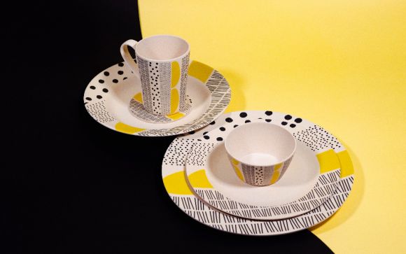 设计师款餐具则更为活泼,采用多样式几何设计和樱花元素,整体设计感十足。在配色上,餐具也更加大胆,多采用黄色、玫红色等饱和度较高的色彩,打破常规系列的小清新,在多彩与简约中保持平衡。
