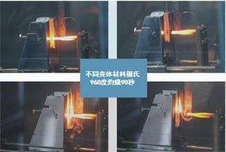 不同壳体材料摄氏960度灼烧90秒的不同情况(上方为西门子,下方为其他品牌)