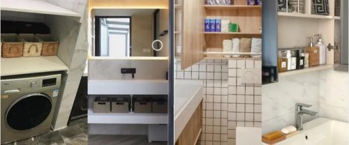 有人会问,大卫生间可以随意安置浴缸马桶,那小面积的卫浴空间怎么办呢?大有大的装修方式,小有小的功能设计,面积不够,当然收纳来凑啦。卫浴间的面积如果不大,收纳就显得格外重要,安装与镜子相搭配的浴室柜,既能拥有储物空间又能在视觉效果上的得到延伸。同时,还可以合理利用墙面壁龛做收纳,实用收纳不碍。