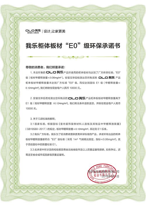 图:我乐家居E0级环保承诺书