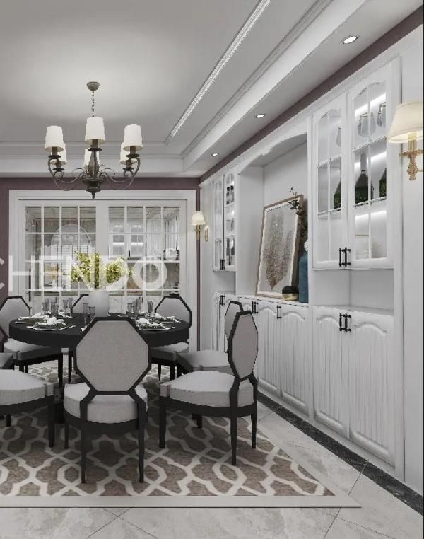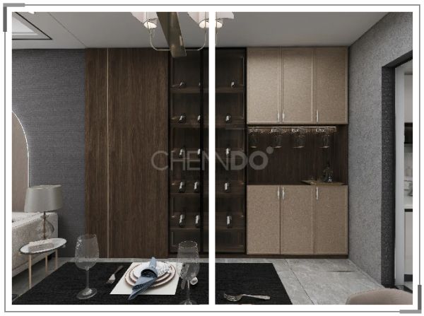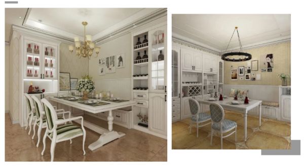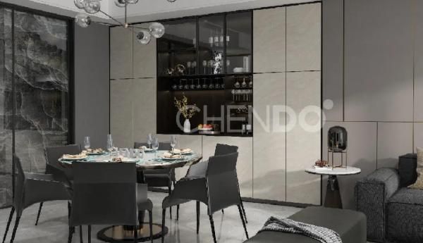 面积不足的餐厅,直接把餐桌椅嵌入到餐边柜