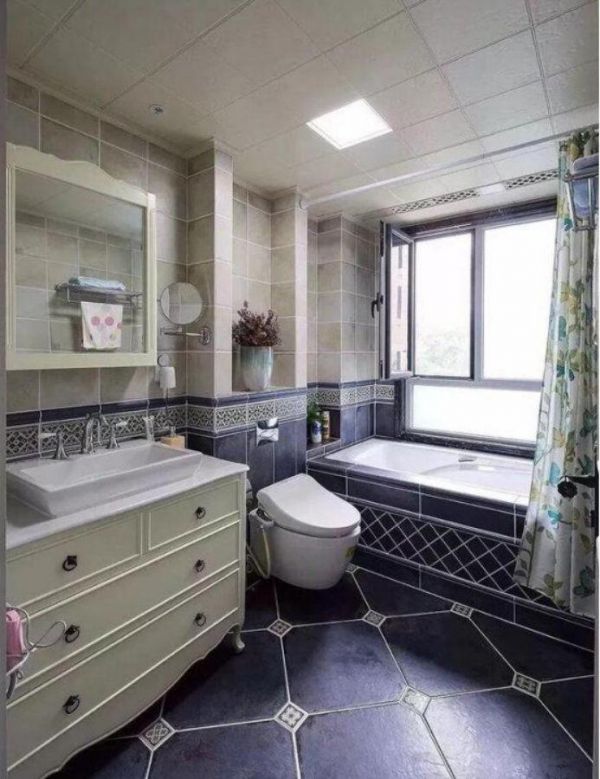 卫生间也是有客户喜欢贴花砖,有的是贴马赛克,那有的人会在马桶后面会加一些花砖都是可以的,但是我们买花砖的时候一定要看一下,花砖的尺寸是不是墙面的砖一般大的,我见过有人买的花砖比普通墙面贴砖大一套。你怎么搞都搞不进去,这一点需要注意。