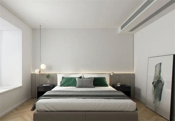 雅致内敛的百合白,用在卧室上,可以让人们逃离喧嚣,抛弃所有的绚烂,留一处纯净简约的百合白,让卧室成为我们身心的安宁所在。