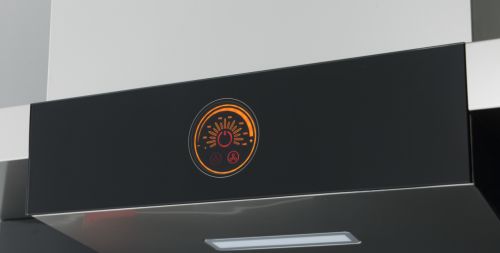 启动烟机的瞬间,橙红色的指示灯为黑色机身点缀了几分温暖,橙色的显示器与黑色的玻璃质感舒适融入,既有黑色的高雅沉稳又有橙色的活力与张扬以及想象力。