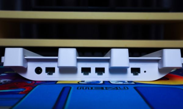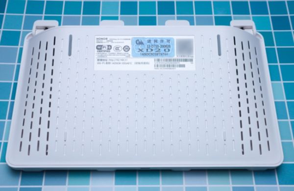 荣耀路由3的背面是电源插口、重置插口以及四个自适应千兆网口。网口的设计依旧延续了荣耀路由器系列支持盲插的良好特性,不区分LAN口和WAN口,路由器能够主动区分出网线的类别,如此智能的设计大大减少了用户自行区分的烦恼,配置路由器的时候再也不用查看哪个是WAN口,哪个是LAN口了。