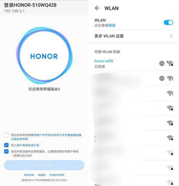 新用户在初次使用这款wifi6+路由器时只需要一部手机就可以完成网络配置。将网线盲插到路由器背后的网口之后,接通电源。然后在手机上寻找该款wifi名称(如上图),再根据提示进行配置网络。配置完网络就可以通过智慧生活APP绑定和操作这款wifi6+路由器了。连接过程非常简单便捷,独居小白也能够轻松完成。
