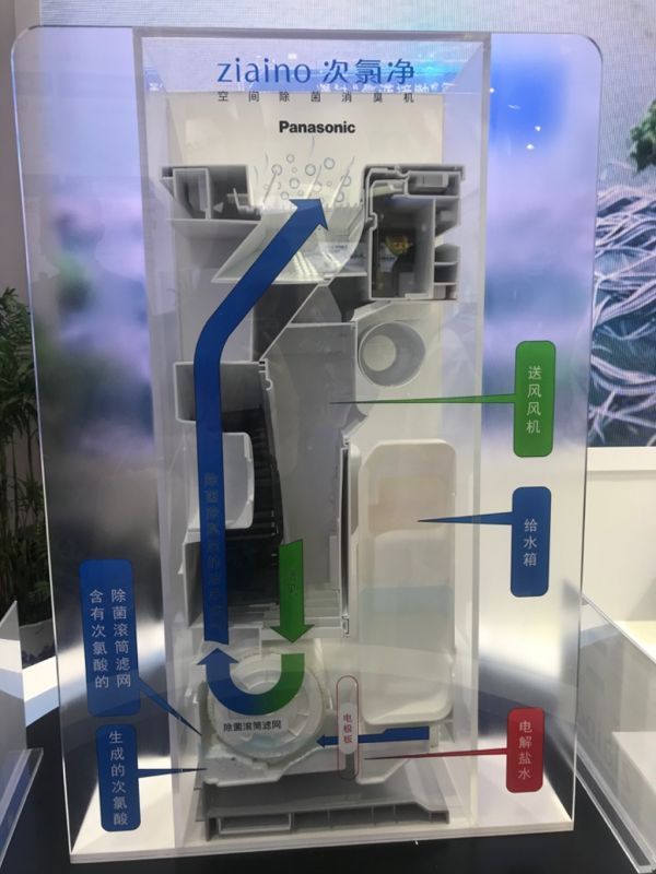 针对当下疫情,消毒成为每个人的日常环节,松下环境系统在此次展会上展出了一款满足各种有空气洁净需求场所的机器——松下ziaino次氯净空间除菌消臭机。