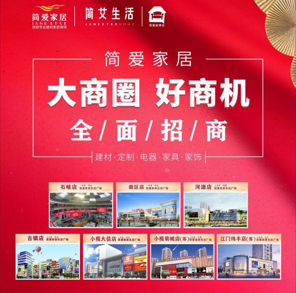 简爱家居股份有限公司是全国知名一站式专业连锁家居商场,植根伟人故里中山,立足珠三角,服务全中国。创立于2007年,总产值超过100亿,已成功举办300多场创新营销落地活动,服务覆盖一亿人群。坐拥城市CBD黄金商圈千万人流,甄选500+家中高端家居品牌,是一个高品质的家居生活与文化体验平台。简爱家居深度挖掘购物中心商业与家居生活的融合模式在中山、江门、河源等多座珠三角城市,成功开出了中山石岐店、中山南区店、中山小榄店、中山古镇店、河源店、惠阳店、江门纬丰店、中山小榄菊城店等多家经典家居商场,吸引了500多家一线家具、家饰品牌的强势进驻,打造一站式品质生活家居购买。