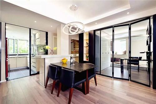 1,厨房中安装折叠门材质非常多,这边先来给大家说一下玻璃材质的折叠门,玻璃材质的折叠门大部分为钢化玻璃,它在安全性能上非常可靠的一种材质,并且时尚感也非常十足,能够很好的拓宽厨房中的视野,为我们造成一个视觉上直接能够享受的视线,这样就从而拉大厨房当中的整体空间感。