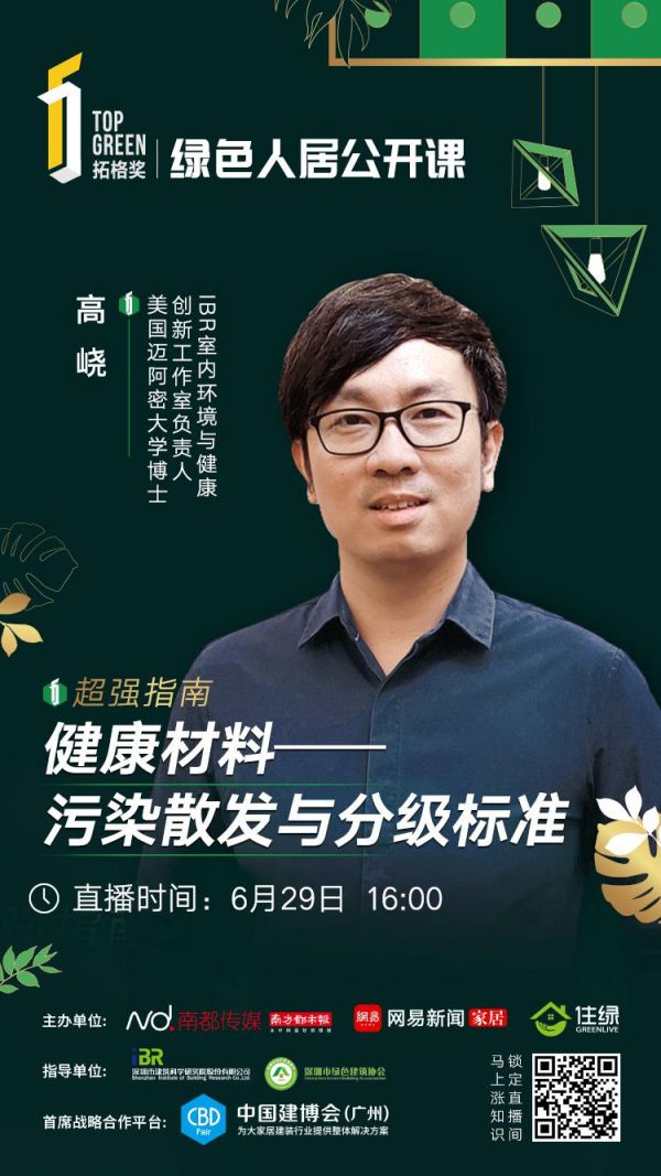 6月29日,绿色人居公开课第二期,IBR室内环境与健康创新工作室负责人、美国迈阿密大学博士高峣带来《健康材料——污染散发与分级标准》课程分享,探讨绿色建筑与人的关系,以及材料的污染散发与分级标准问题。