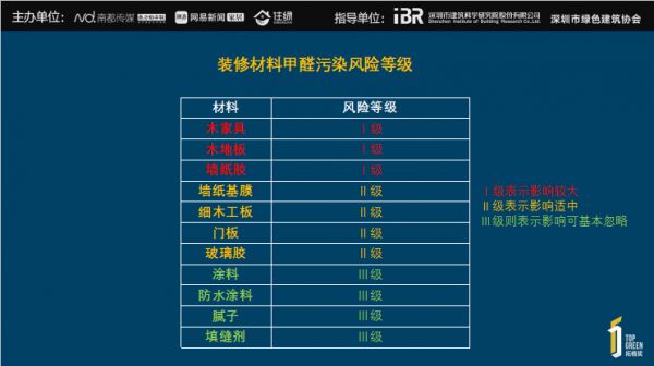 3、装修材料甲醛污染风险等级