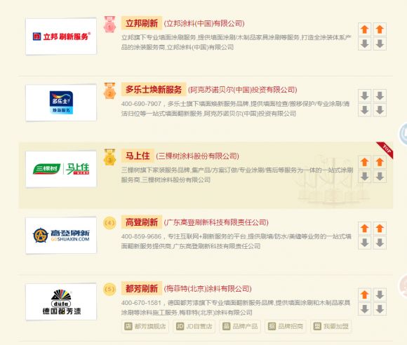 在新鲜出炉的墙面翻新十大品牌当中,首当其冲的是:立邦刷新、多乐士焕新服务、这些涂料大企业。它们作为知名的涂料品牌,拥有传统涂装的技术打基础,自然会占有一定的优势,但同样的,我们知道知名度越高的品牌,它的价格也相对会较高,所以在价格选择上面,并没有优势。