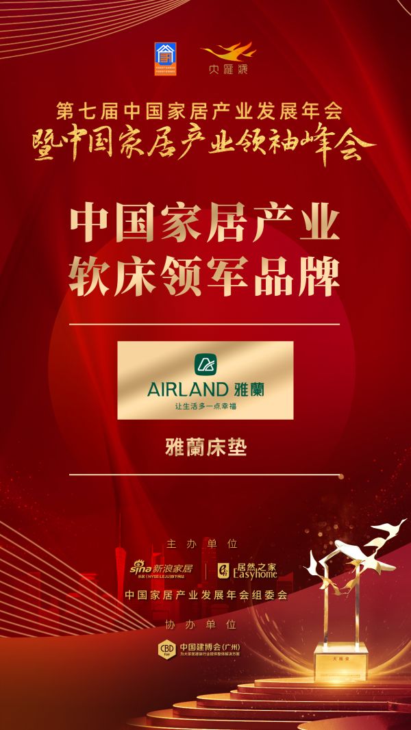 2020大雁奖揭晓:雅蘭床垫获中国家居产业软床领军品牌