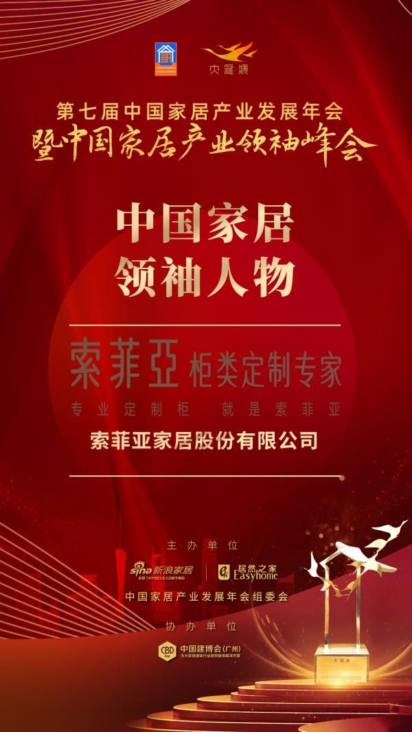 索菲亚家居股份有限公司,荣获2020年「大雁奖」中国家居领袖人物奖。