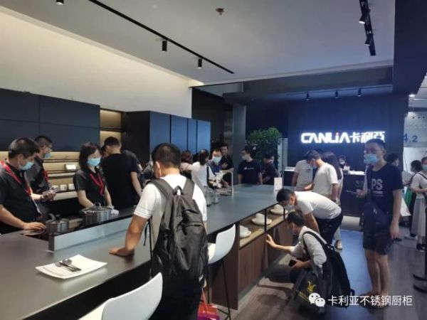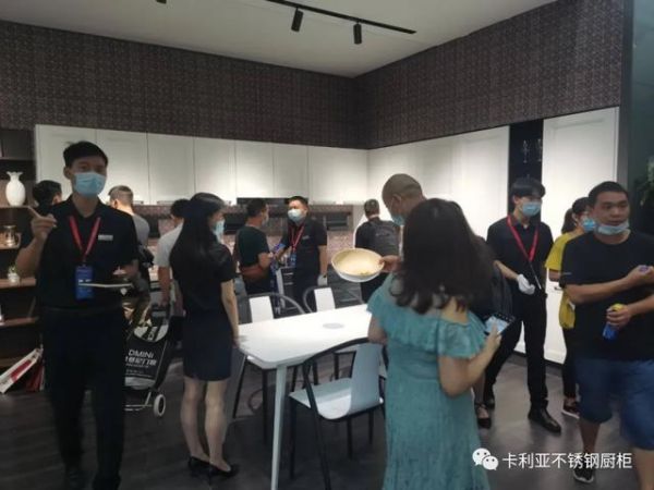疫情影响,也不减人们对于广州建博会的热情;大牌齐聚,也阻挡不了卡利亚散发的光芒。直击展厅现场,在展位门口就可以看到络绎不绝的人头攒动,有的俯身仔细端详,仿佛想望穿这不锈钢台面,一探里面的究竟;有的仰头伸手触碰,摆弄上柜的升降调味篮;有的驻足跟前欣赏产品细节,研究讨论。思想万千,状态各异,但都沉浸在全钢的独特魅力中。