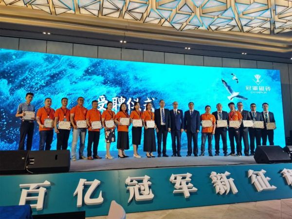 冠军磁砖品牌总经理李丹锋在会上发布冠军磁砖品牌发展规划。李丹锋介绍,冠军磁砖将以健康为大旗,以功能瓷砖为支撑,重塑百亿冠军。将在佛山智慧新城打造3000+㎡华南营销总部,以中、大规格岩板产品为主打,同时赋予岩板“抗菌+负离子”功能,传播绿色健康新生活,打造年轻时尚、国际化品牌。