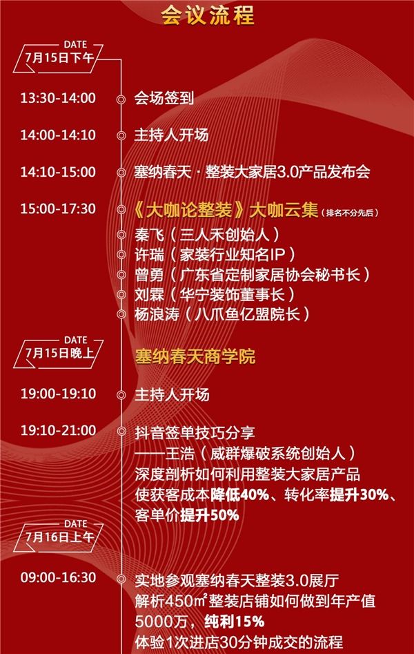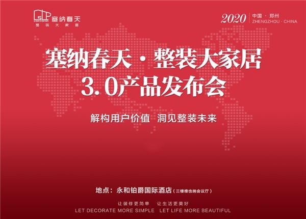 发布会将从塞纳春天多年来的品牌积淀与行业经验出发,结合当前的家居行业大环境,从新品研发、品质追求、客户刚需等诸多方面,发布年中塞纳春天3.0新品——塞纳春天·整装大家居,与到会嘉宾一起畅谈关于未来生活方式及整装设计未来的新趋势。