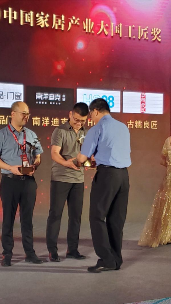 颁奖现场,来自全国各地的家居行业领袖品牌共聚一堂,共同见证了这一场家居行业的盛典。现场出席典礼的有TATA木门、联邦家私、米兰壁纸、领绣壁布、欧派、志邦、尚品宅配、马可波罗、海尔、大自然等众多全国知名品牌董事长及总裁。而古糯良匠能够在这样一众一线品牌中脱颖而出,这充分说明了古糯良匠在技术研发、产品实力、服务质量和品牌认可等方面获得了广大消费者和现场评委及品牌的认可。