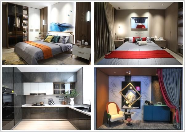 在产品展示方面,卡诺亚再次令人耳目一新,为客商带来了卡诺亚行业首创的“空间定制”新品“轻奢格调”和“极简生活”系列。每个空间均从卡诺亚行业独创的“空间定制”高度进行设计,让家装、家具、家饰及家电统一风格,“天、地、墙”完美搭配,一站式配齐,体现整体和谐之美。其次,采用同步国际潮流家居、卡诺亚自主研发的轻奢极简花色墨趣、银丝木、染影银、LCT珍珠白、黑泽明、御品木、黑钻灰、雅皮士、太空石等,通过设计师的巧妙搭配和撞色设计,营造了充满色彩立体层次质感的高端空间。