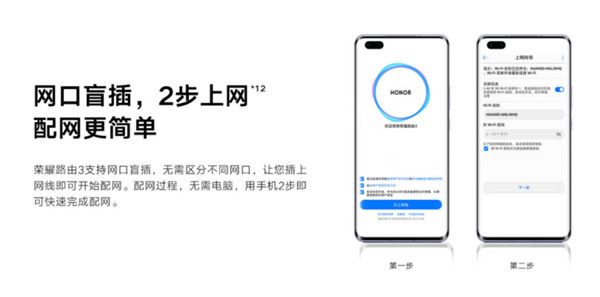 在以往购买路由器之后首先需要记住原有的宽带密码,然后插网线,登网址IP或者手机连接特定的app,来进行设置。而荣耀路由3将连接过程做了很大的简化,把复杂的设置尽可能地简单化。比如网口盲插,复制旧路由存储的宽带密码等等,为各位用户提供了极大的便利。通过智慧生活app也能简单的完成绑定,并且用户还可以通过面板Hi键进行免密链接。