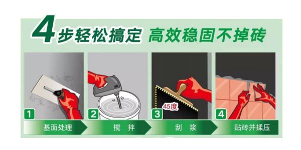 尤其在粘结性能方面,瓷砖胶除了拥有水泥砂浆或者水泥油的机械嵌固力外,还靠产品中特殊添加剂产生的分子间作用力将瓷砖牢牢粘住,这就是为什么水泥砂浆或水泥油粘贴吸水率低的瓷砖易出现空鼓掉砖,而瓷砖胶不会的关键所在。