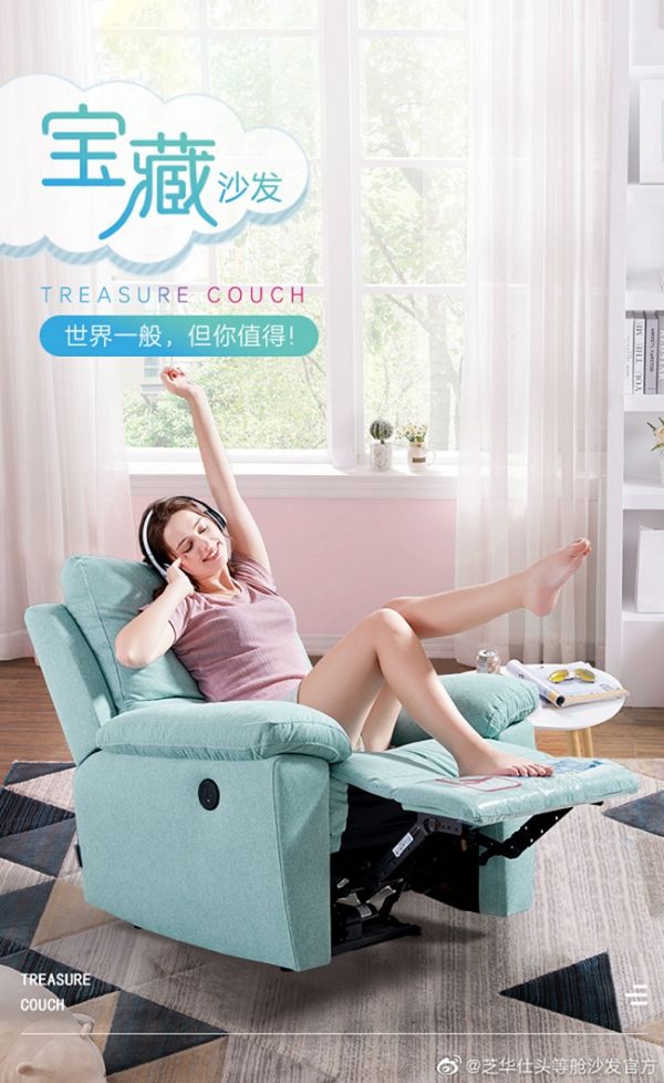 芝华仕8908B宝藏单椅有五大人性化功能,从110°到160°五种角度,无论是想坐着、躺着,无论是想上网、阅读、看电视、听音乐还是睡觉,都可一键满足。产品表面采用的是经过4万次耐磨损检测依旧能够毫发无损的仿羊毛面料,可经受猫狗等宠物的抓挠,放心的在沙发上抱着爱宠,再也不用担心;为了解决传统布艺沙发拆洗麻烦的难题,产品采用了纳米技术烘制而成的一层抗污屏障,轻松防水防污防油,轻松擦拭即可清洁,让生活更清爽。