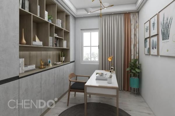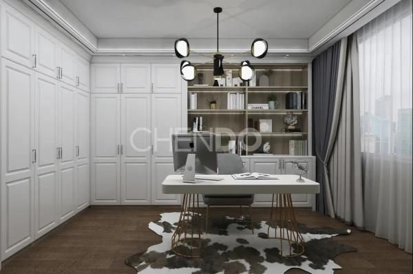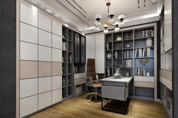 书房可将沉稳作为主基调,从材质运用到色彩搭配,再到桌椅的结合,每一步都需要合理搭配,华丽又不落俗套,让书房光感亮丽。