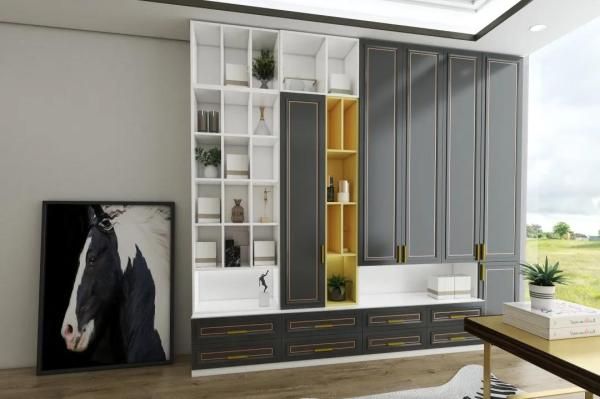 整面墙书柜和书桌,美观又实用,让工作空间充满活力,富有通透感的书柜,充满了高级的元素,在书房,享受一天的时光。