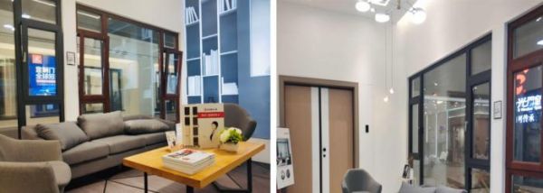 而门窗馆在设计上则结合了门窗安全稳重的特性,整体设计形似跃然而起的箭头,采用直线巧妙布局,没有繁复装饰,风格简约大气。展馆以灰、白、黑三色为主色调,严谨极简的展馆形象更突显了落地门窗的特性,传递出安全可靠的产品理念。