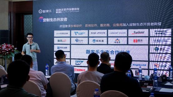 会上,酷家乐生态运营总监卫东带来了《智能制造的生态伙伴分享》的主题分享。卫东认为,各前后端企业能于今日齐聚于此,不仅仅因为大家都是软件公司,而是大家都共同肩负着一个“智能制造”的行业使命。