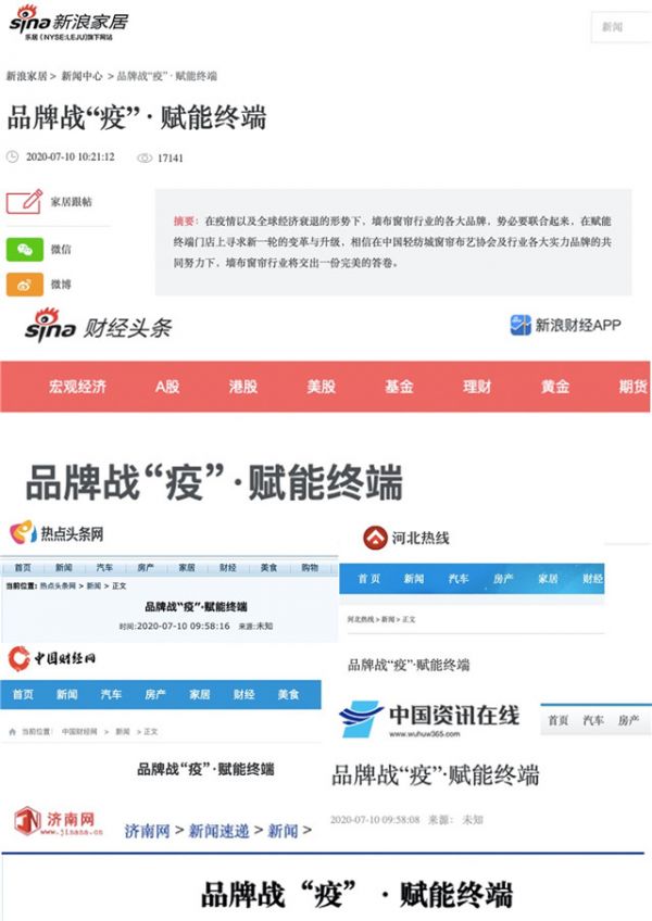 今年7月,绍兴市柯桥区中国轻纺城窗帘布艺协会作为带头人联合了多家品牌商,开启了抗疫鏖战的自救之路。在政策方面中国轻纺城窗帘布艺协会联合多家品牌将于7月30日至8月2日举办招商会,在此次招商会上,经销商不但可以看到原本因疫情取消的北京展上应该展出的2020年新品,还可以享受到各大品牌的实惠政策,在资金方面,中国轻纺城窗帘布艺协会及业内多家品牌商共同拨款1800万,为让资金落到实处,1800万将直接用于补贴所有参会经销商,硬核”帮扶政策,共同战“疫”,共克时艰,方能彰显企业的社会责任与担当。此项举动引发了包含新浪家居在内的各大网站的争相报道。