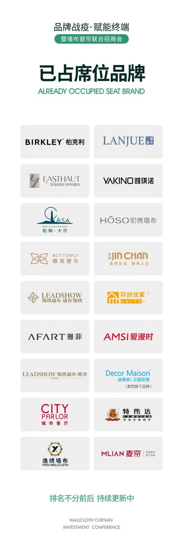 除了这次活动的引路人中国轻纺城窗帘布艺协会,积极响应的经销商也是多种多样。从主办方处得知,参与这次招商会的品牌商众多,可谓盛况空前,它们各有特色,既有百年传承的匠心品牌,也有新锐设计品牌,它们有的善于市场营销,有的精通产品工艺,接下来让我们一起来了解下部分参会品牌。