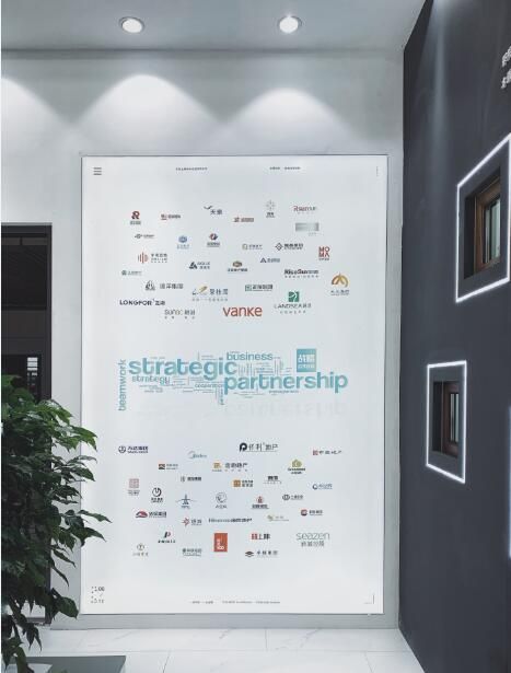 战略合作区向参观者展示了与金鹏铝材合作的众多百强地产企业。