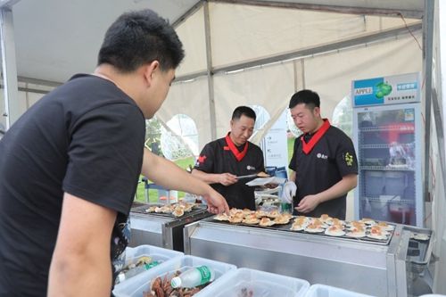 香喷喷的烧烤,不管是肉的素的来它一大把。海鲜更是少不了,海蛎子、海虹、海螺、扇贝,还有各式小菜,蟹钳、脱骨凤爪、酱牛肉。同时,还有新鲜果盘、果汁、甜点……灯光交相辉映,小桌子一支,小酒一拎,好不惬意,热闹的会场无处不在的啤酒氛围,本来十斤的量怎么也要翻一番。