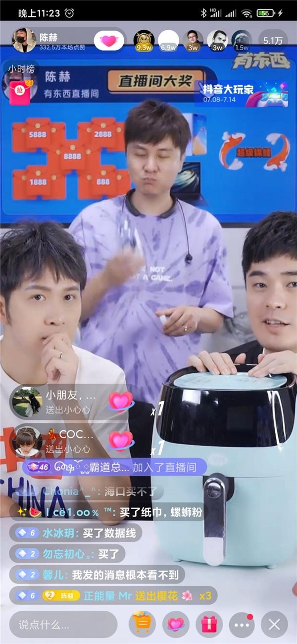 再加上悠伴空气炸锅内设6种菜单模式,不同模式对应不同美味烹饪,凭借如此简单易懂的操作方式而迅速圈粉,除了吸引一众小红书达人、抖音网红种草推荐之外,还吸引了明星大咖们也纷纷推荐,7月11日,万众期待的抖音带货超级明星陈1赫,在抖音直播带货,为大家带来了一系列的惊喜产品,其中悠伴空气炸锅登场后就被广大粉丝疯抢追捧;