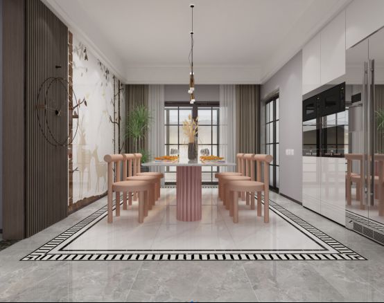 加德纳灰和老矿爵士白是两款非常耐看的大理石瓷砖,加德纳灰延绵的纹理看起来你就像一大块大理石一样,很多客户用来做客厅地砖使用,视觉效果很时尚。搭配珊瑚粉餐桌椅,确认过延伸,是个浪漫的人。