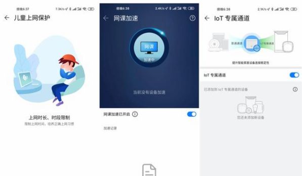 荣耀路由3为了让人们能够更加舒适地享受智慧生活所带来的便捷,不仅设置了能够与智能家居产品联动体验的loT专属通道,而且还设置了很多丰富的智能功能:网课加速、手游加速、儿童上网保护等。在游戏过程中,通过路由和手机wifi芯片的协同,双频同时连接手机来减少卡顿,降低游戏延迟;对于在线网课、远程办公等同样通过智能识别数据流,来减少wifi丢包与延时,据说能够精准识别3000多款游戏,覆盖范围极其广。