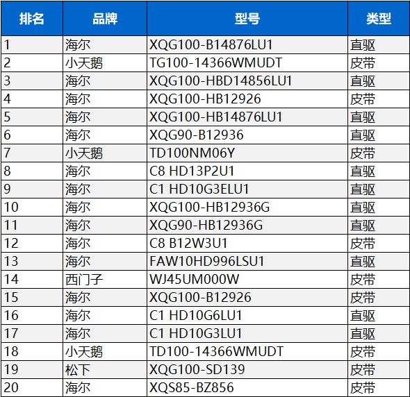 再拿中怡康最新公布的累计28周行业数据来说,洗衣机累计畅销榜TOP20中,搭载直驱电机的洗衣机就占据了11席。
