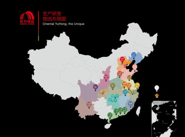截至目前,东方雨虹在全国拥有28家生产研发物流基地,可实现300公里辐射半径,24小时使命必达;拥有80余条国际先进生产线,实现全流程自动化生产,树立了行业高产能、高精度、高稳定性的标杆。