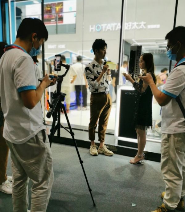 尽管现场人气鼎盛,但不少商家为疫情下的展览仍做足了准备。好太太智能家居作为中国建博会(广州)智能家居的C位嘉宾,本次亮相4.1馆,占地232.5㎡,复式双层展出现代简约美学与智能科技的魅力,实行了线上直播+线下逛展的形式引流。