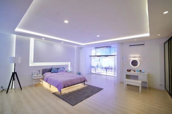 此外,还有智能“回家模式”,通过定位器、人体感应器,当人进入玄关位置,室内节律照明系统自动匹配为暖色光,温馨而舒适,亮度逐渐变亮;舒缓的背景音乐缓缓响起,窗帘慢慢关闭,一天的倦意即刻消散。
