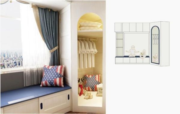既然孩子喜欢钻衣柜,索性把衣柜做成树洞式,集收纳和娱乐为一体。