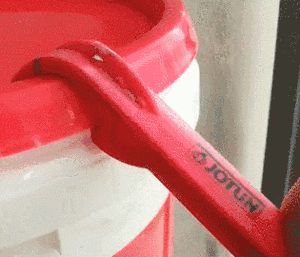 下一步,按照该产品的操作指引,先用店家赠送的开桶盖小工具把防水桶盖撬开(说老实话,这店家送的这个开桶工具真的很好用,比起用螺丝刀、钳子等传统工具开盖方法,既省力又快又好,谢谢店家了)。
