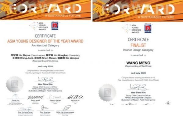 (2020年7月16日,上海) 由立邦中国母公司-新加坡立时集团(Nipsea Group)主办的2020年度亚洲青年设计师大赛(Asia Young Designer Award,以下简称AYDA)近期顺利落下帷幕。本次赛事汇聚了来自经过15个国家和地区层层选拔出来的26位各赛区优胜者,强强对抗,最终代表中国参赛的西安美术学院胡智越、沈志伟、王佳琦、解建国、林宏瀚团队以其作品《游园惊梦——禅意文化空间叙事性探究设计》荣膺AYDA大赛最高奖项—建筑组金奖,并被授予了2019/2020亚洲青年年度设计师的头衔,并可前往美国哈佛设计院进行为期6周的进修学习。同济大学的王萌以其作品《90后的理想家》获得室内组别优秀奖,同样得到了国际评审的一致好评。