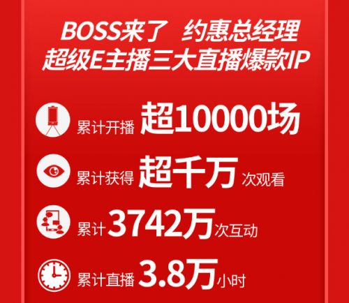 活动期间,居然之家联合全国12大家居品牌开启“总裁团价到,好货降到底”的线上线下品牌联合营销活动,同时居然之家推出的“BOSS来了”“约惠总经理”“超级e主播”三大直播爆款IP不同凡响。在5月30日至6月21日的活动期内,居然之家联手包括慕思寝具、顾家家居、丝涟床垫、金牌橱柜、好莱客全屋定制、浪鲸卫浴、诺贝尔瓷砖、老板电器、华帝电器、奥普家居、生活家地板以及益圆木门在内的十二大品牌BOSS进行联合营销,为消费者提供了包括软床、沙发、洁具、定制、瓷砖、电器、地板、木门在内的多款居然之家专享价产品。