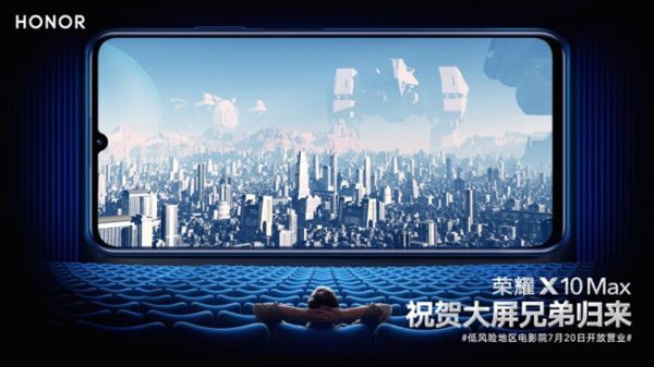 以上就是荣耀X10 Max这块大屏的优势,大屏为我们的生活和工作带来许多便利,例如文档更方便操控,游戏体验更逼真等等,因此拥有一款优秀的大屏手机是一个很不错的选择。在7月20日,低风险地区的影院即将开业,人们期待已久的电影终将到来,荣耀X10 Max也发微博祝贺大屏兄弟归来。在这个7月,让我们一起用大屏看看影音、做做工作,感受大屏手机的魅力。