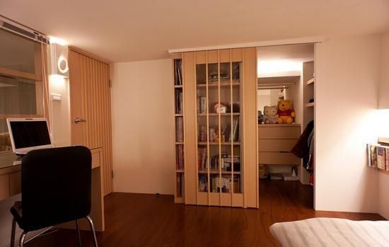正方形的卧室,只要卧室空间足够大,完全可以将其一分为二,然后用滑动门做隔断就可以了。这样一来,一面是卧室,一面是衣帽间,而且施工量也不会太大,主要就是墙面和门。