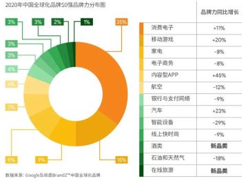 7 月 16 日,谷歌、WPP和凯度联合发布《2020 BrandZ™ 中国全球化品牌 50 强》榜单。从榜单公布的数据来看,各品类的品牌力及品牌的排名均出现不同程度的变化,呈现出涨跌起伏的态势。在前十强名单中,消费电子类和家电类品牌占比最高。消费电子类品牌华为、联想排名最高;家电类品牌海尔、海信排名最高。其中,该榜单中海尔的品牌力评估是基于海尔集团子公司之一海尔智家的全球业务。